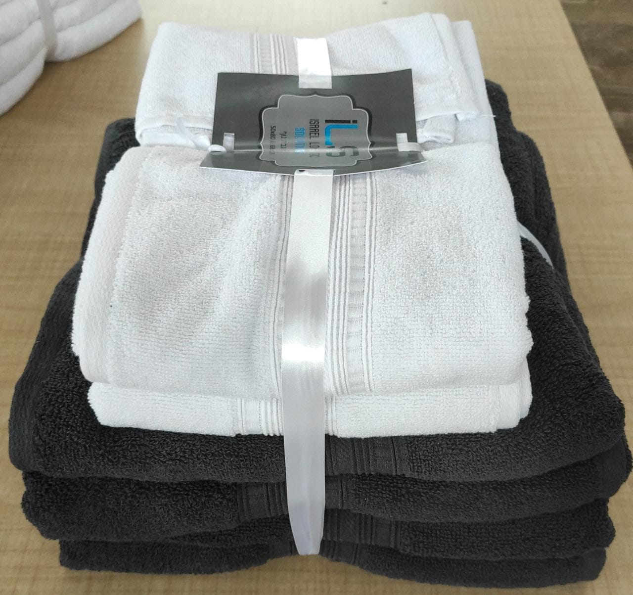 סט מגבות פנים וגוף – שחור / לבן / אפור